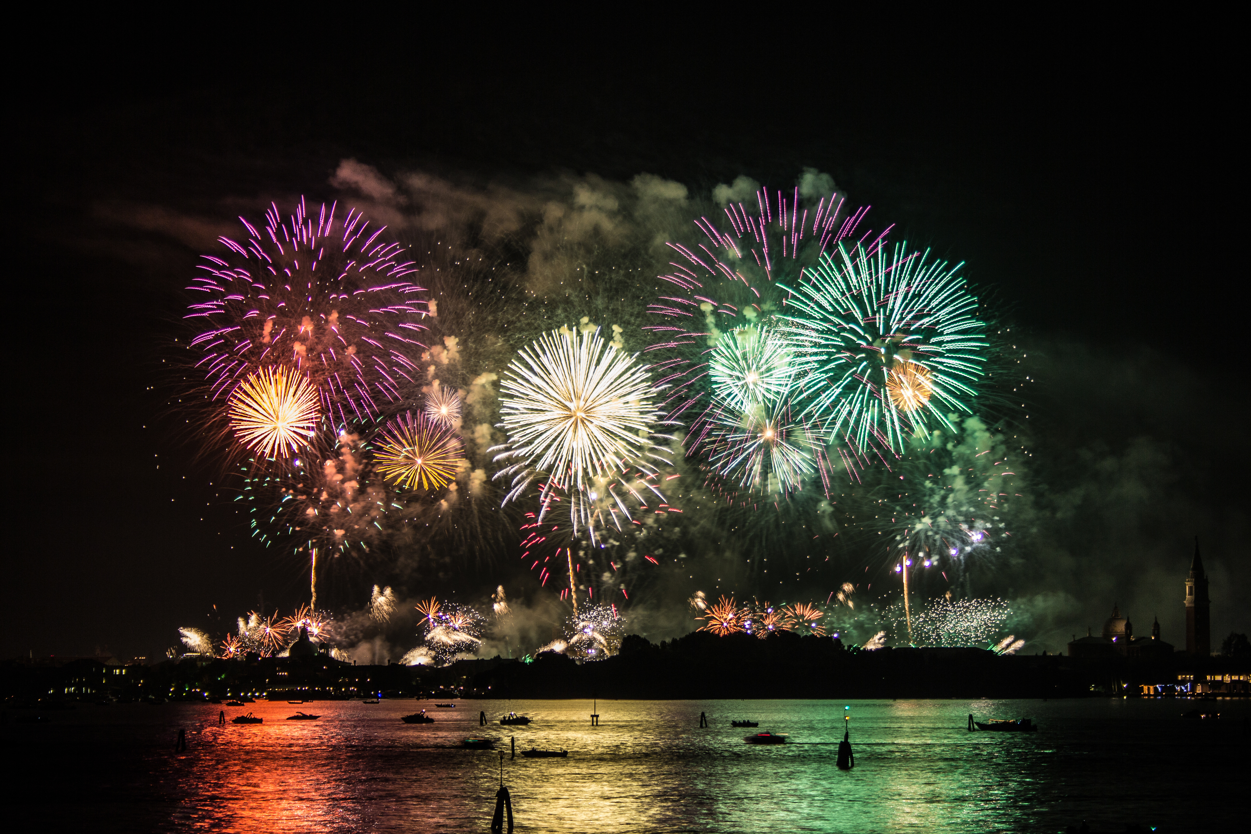 In Venice, there is one night when the city turns outward. What usually happens behind façades and along narrow calli moves directly onto the water — and the lagoon becomes the place where everything happens. Every third week of July, boats slowly fill the basin of San Marco and the Giudecca Canal, transformed into floating terraces. Tables are laid, glasses are raised, and the city takes shape through gestures that belong as much to daily life as to celebration. As darkness settles, the sky opens into light: fireworks unfold above the lagoon, mirrored by the water below, dissolving the boundaries between city and reflection. What you witness is a true moment of belonging — where being there matters more than watching.