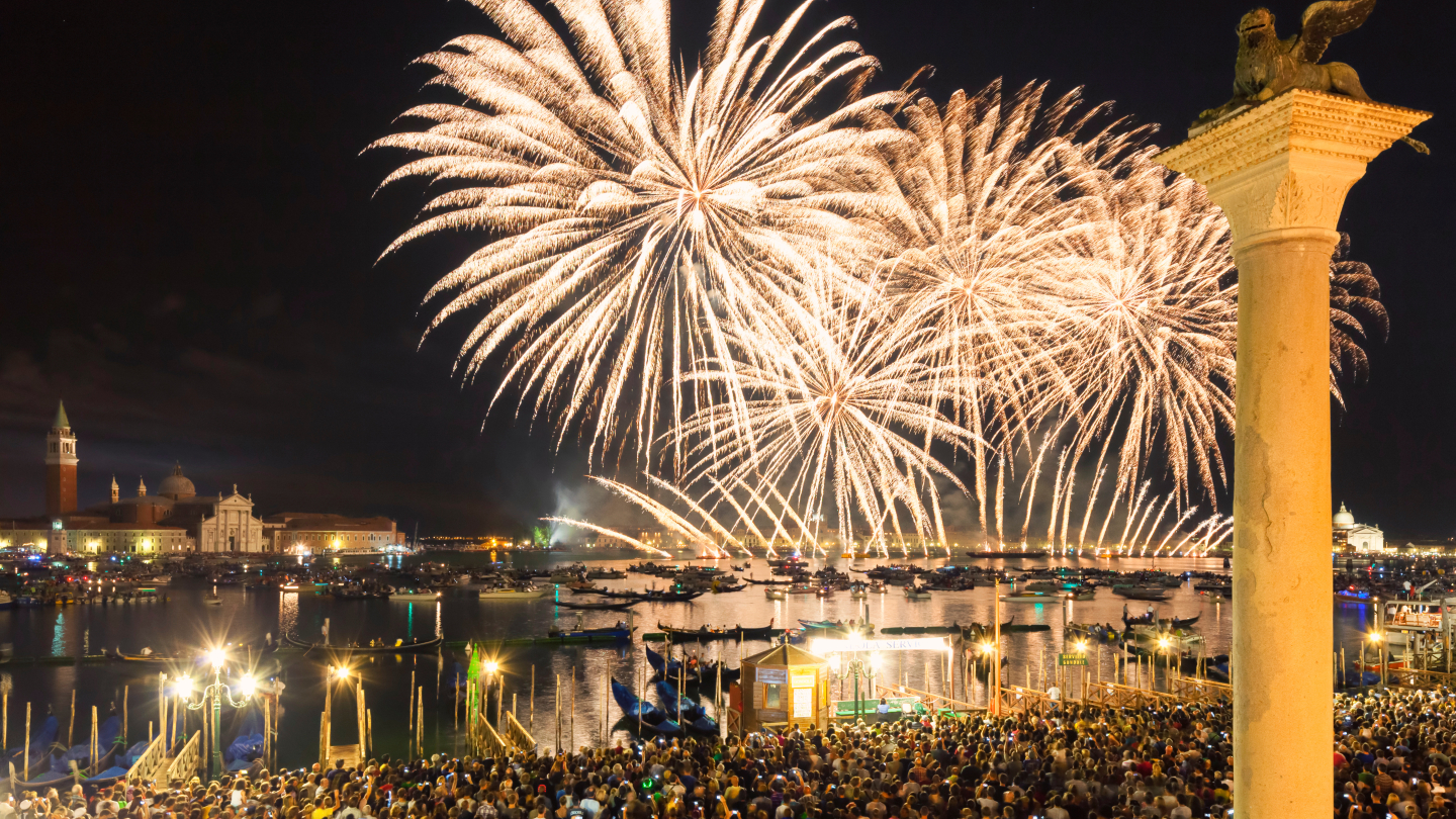 À Venise, il existe une nuit où la ville s’ouvre vers l’extérieur. Ce qui se passe habituellement derrière les façades et le long des calli étroites se déplace directement sur l’eau et la lagune devient le théâtre de tout. Chaque troisième semaine de juillet, les bateaux remplissent lentement le bassin de San Marco et le canal de la Giudecca, transformés en terrasses flottantes. Les tables sont dressées, les verres se lèvent, et la ville prend forme à travers des gestes qui appartiennent autant au quotidien qu’à la célébration. À la tombée de la nuit, le ciel s’illumine : les feux d’artifice se déploient au-dessus de la lagune, reflétés par l’eau en dessous, effaçant les frontières entre la ville et son image. Ce que l’on vit est un véritable moment d’appartenance, où être présent compte plus que regarder.